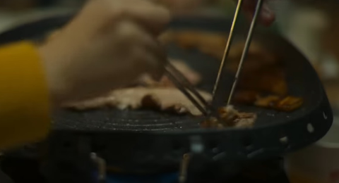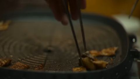 구워지는 삼겹살 보며 입맛을 다시는 맛잘알 '지안'과