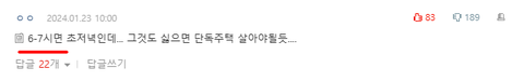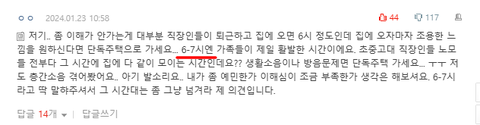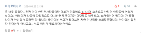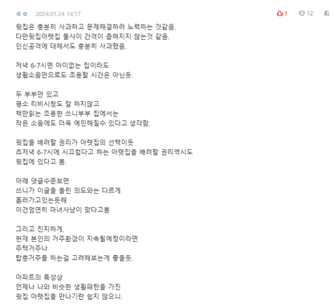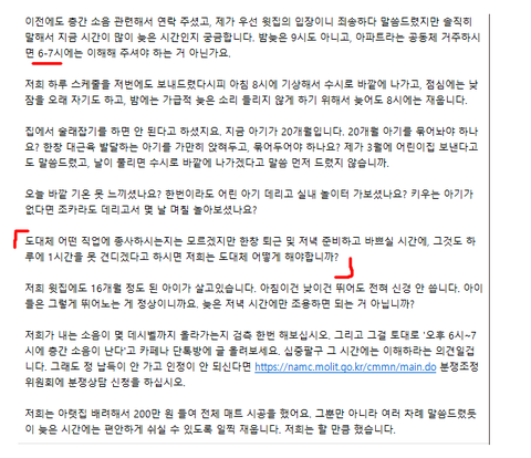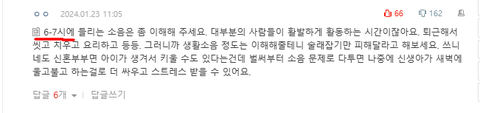 내용중에 6-7시 사이에 층간 소음은 이해해야 하는 거 아니냐는 댓글을 달음