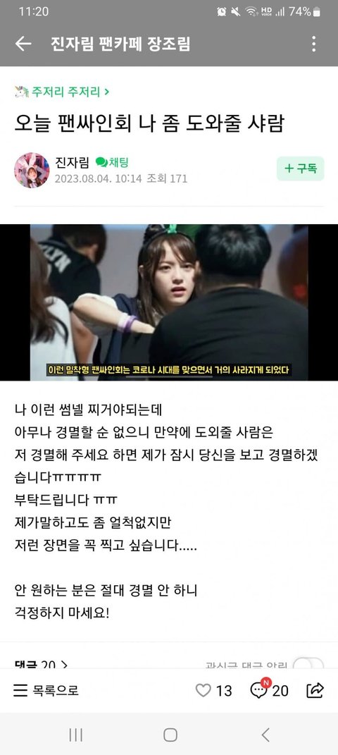 그 진자림씨가 본인 팬카페에 남긴 연예인 김세정님의 짤과 내용.