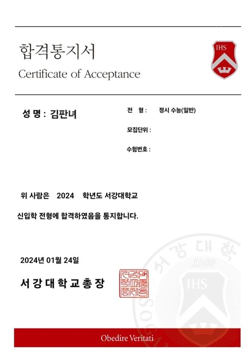 얘드랑 나 대학 합격함 찐