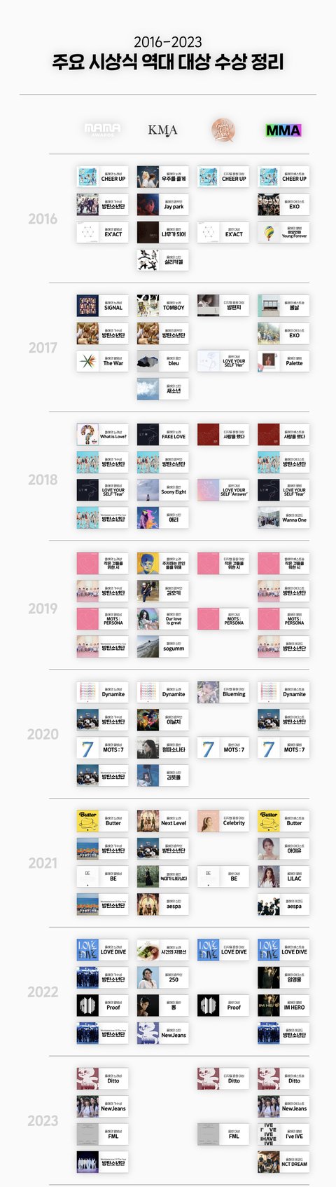 잡다한 시상식 제외하고 주요만 보니까 전체적으로 확 느낌이 온다