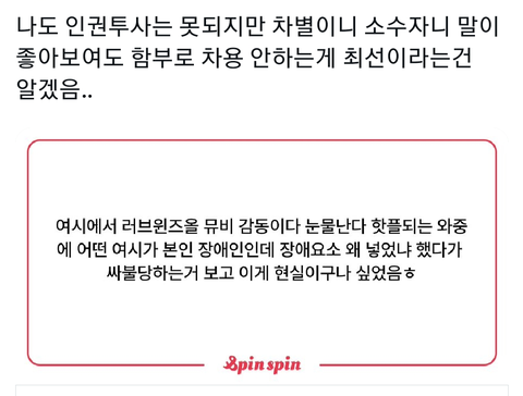 오히려 장애인으로서 봤을 때 슬프고 보기 좋았음