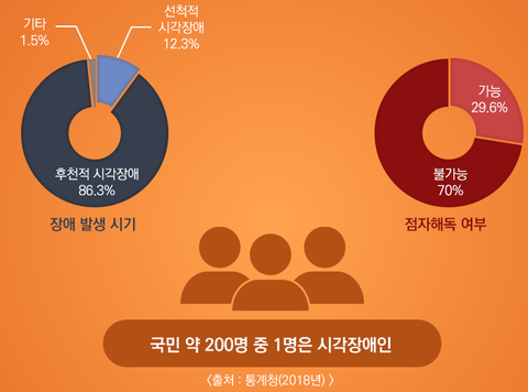 한국 시각 장애인 80퍼 이상이 후천적 장애라