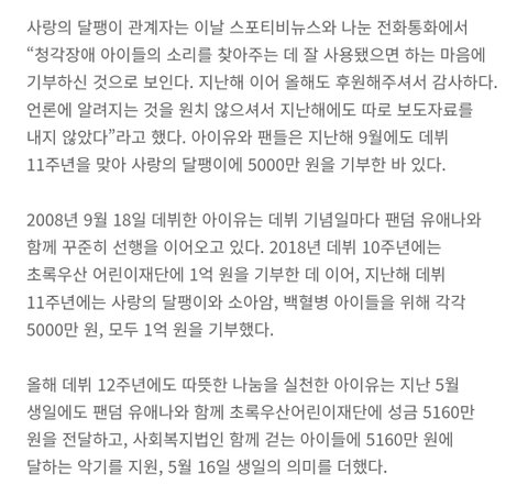 거기에 아이유는 이번 일 전부터 청각 장애 관련 단체에 꾸준히 기부도 해옴