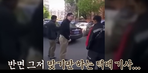한 남성이 택배 기사의 뺨을 때리며