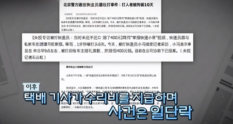 택배기사가 수리비를 물어주면서