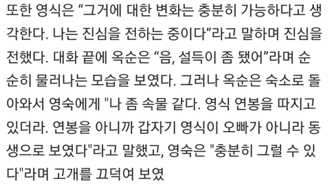 영식이 받아주지 않자 "간극이 한 발짝 멀어졌다"고 함