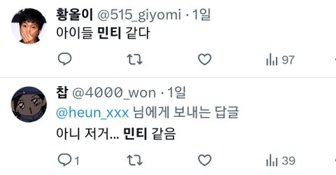 짹에 민티 검색하니까 나만 그렇게생각하는거 아니긴함
