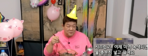 시끄럽고...이제 미역 녹색되면 물 충분히 넣고 끓여요
