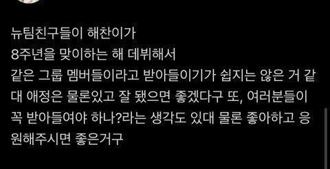 아주 개인적인 생각이지만 어쨌든 내가 8주년을 맞이하는 해에 그 친구들이 데뷔를 하는거다 보니까