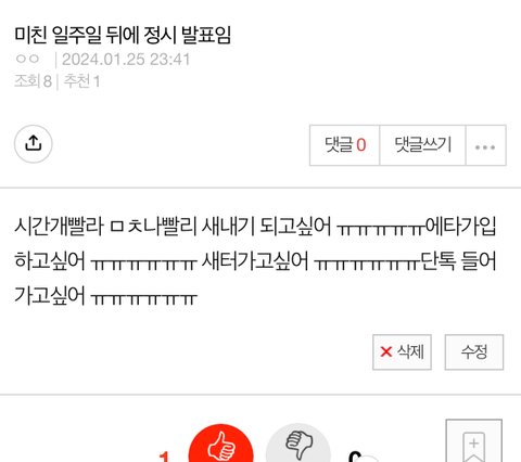 글수정 전에 정sibal표 때매 썰린듯 ㅅㅂ