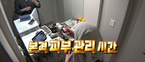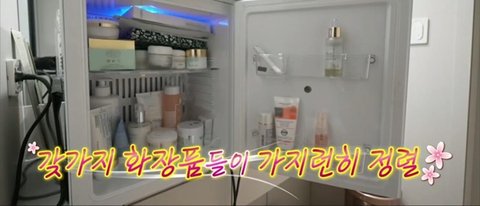 샤워하고 화장품 냉장고에 보관한 화장품 바르기