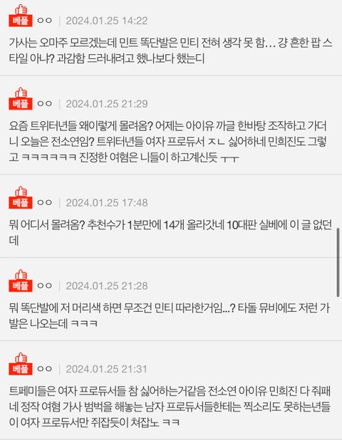 팬들은 첫 주 ar 대놓고 깔린 방송을 라이브라고 주장하더니 진짜 앵콜이 나오니… 화제성이 없으니 망정이지 다른 하이브돌들이 이랬으면 ...