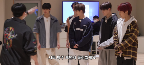 저렇게 둘러 보고 서서 춤 추면서 서로의 표정을 체크해줌