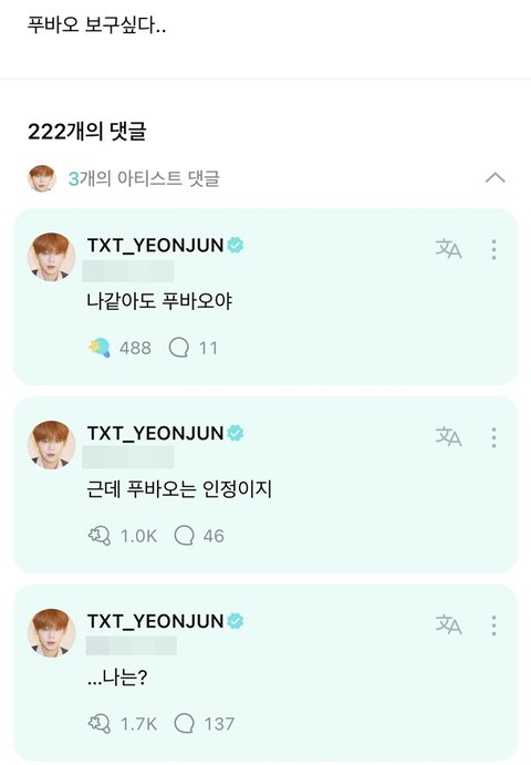 단어 선택에서 느껴지는 연준이의 푸바오 사랑