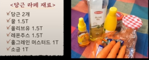 당근, 꿀, 올리브유, 레몬주스, 머스터드, 소금이 들어가고