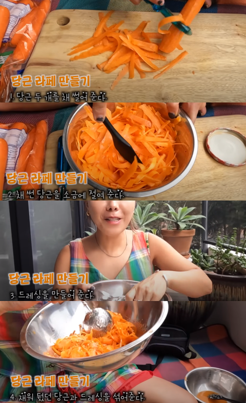 신봉선은 “호주에 있는 동안 아는 언니가 당근 라페가 너무 맛있다고 했다. 한국에 가서도 당근라페를 만들어 먹을 거다. 활용도가 너무 좋다”라고 함