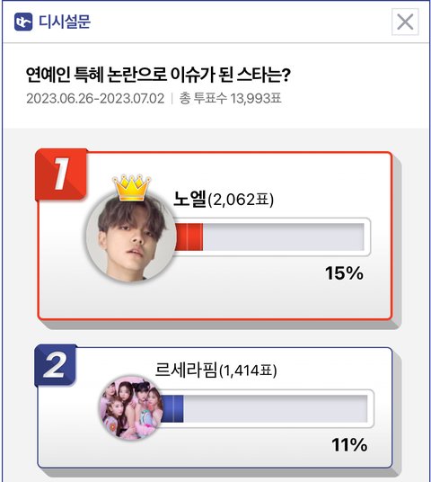 디씨 만4천명 설문에서 2위