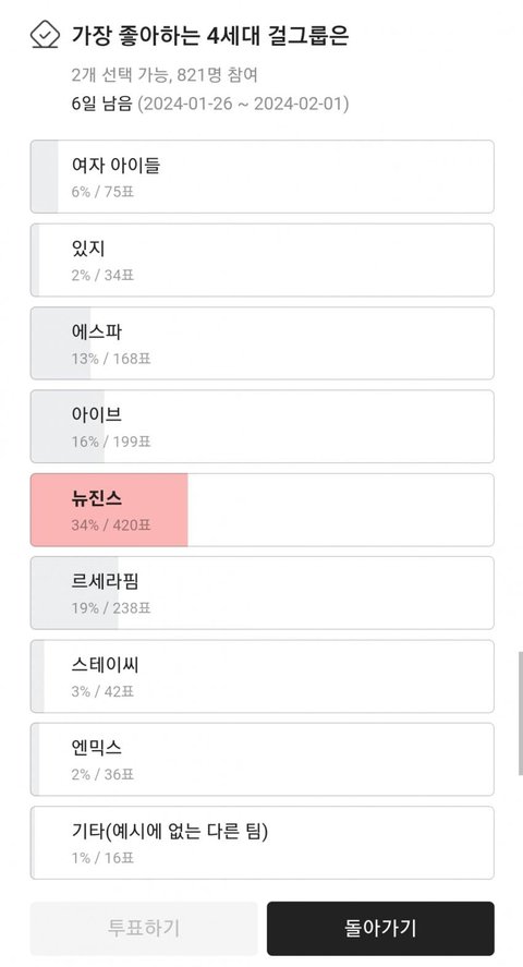 남초 투표는 아무 의미없다 돈 쓰는 인간도 없고 대중성에 ㅈ도 도움이 안됨