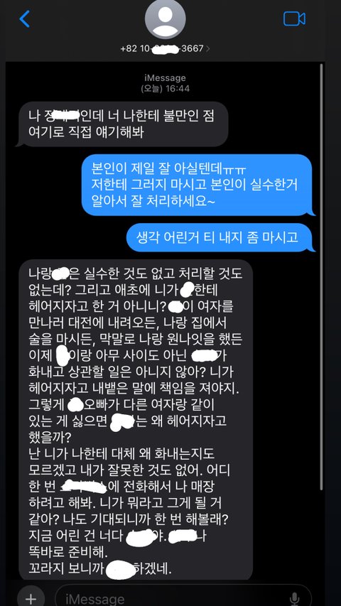 심지어 저 여자는 뭔 소리하는건지도 모르겠는게 나랑 헤어져서 아무 상관 없는데 나보고 난리친다하잖아