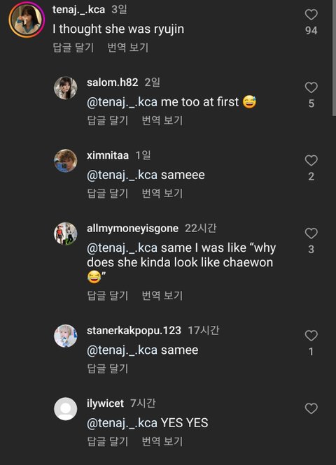 해외팬들이 류진 아니냐며 난리난 김채원 셀카