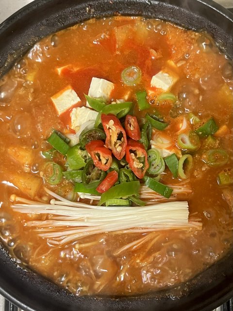 흑돼지 삼겹살 넣었는데 차돌박이가 훨씬 어울리는듯