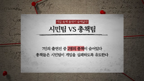 대충 마피아게임 형식인데 ‘총책’이라는 범인 2명 숨겨놓고