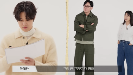 세번째 게임은 그림+행동으로 제시어 표현하고 맞히기맞히는 것보다 그리는 게 낫다 싶었는지 박병은이 공명을 내보냄.