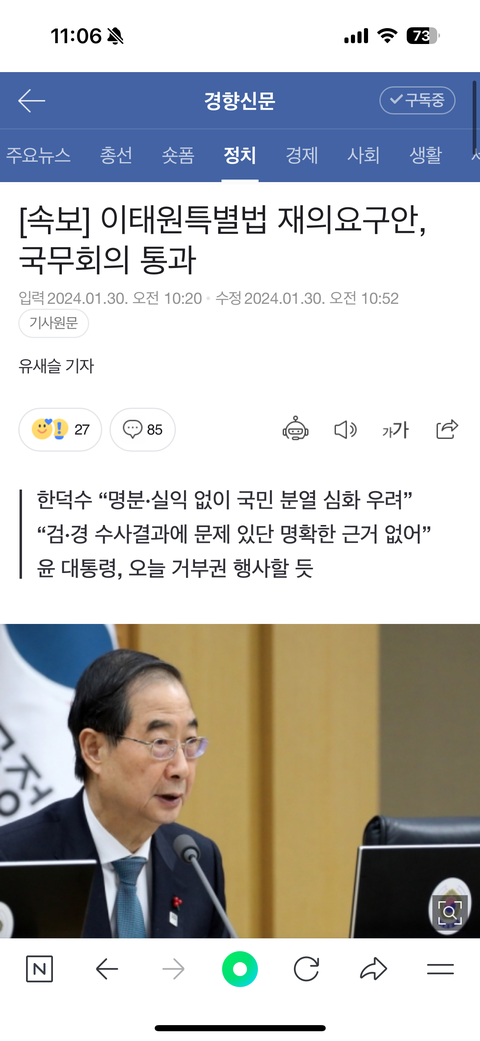 다행히 윤석렬대통령이 거부권행사...하고 한겨례 신문에게 맹공격 당하는 중임.