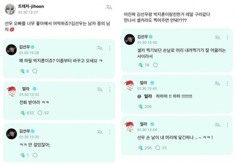 먼소리야 팬들 지금 대놓고 친목 소문내고 다니는데 흐린눈하면 위버스 캡쳐본을 올리겠냐