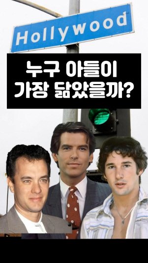 할리우드 스타 6명과 그의 아들을 같은 나이에서 비교해봅니다. 누가 가장 닮았을까요?1. 톰 행크스2. 존레논3. 피어스 브로스넌4. 리처드 기어5. 커트 러셀6. 윌스미스