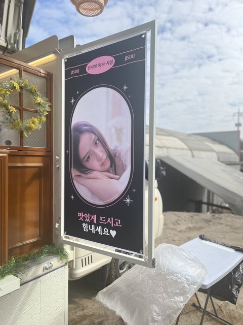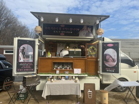 우주 보나 몇주전에 지수 드라마(인플루엔자) 촬영 커피차 보냈는데 지금 지수 영화찍고있고 이번에 울 챙이 커피차 보냈네