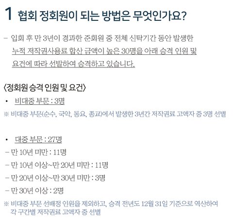 한국음악저작권협회 정회원 자격요건
