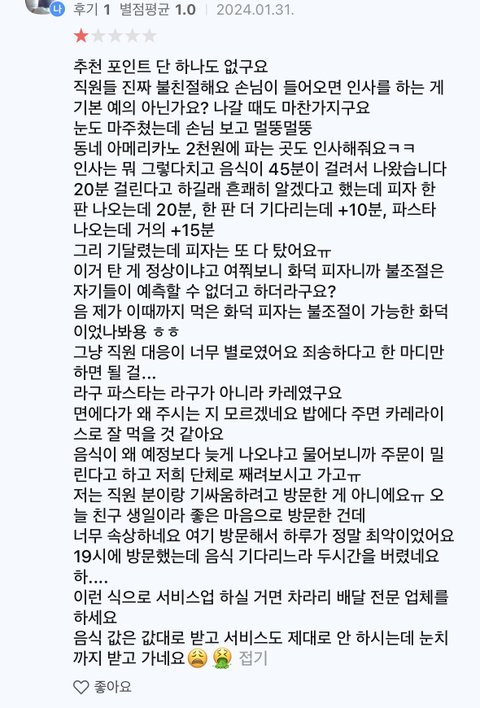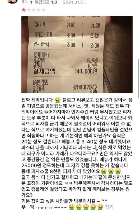 오늘 당한 일 카카오맵 리뷰로 적어놨는데 분이 안 풀려서 네이트판에 또 적음 삼각지 ㅋㅍ인데 딴 판녀들은 절대 가지 말어라 14만원 썼는데 눈치만 보다 옴