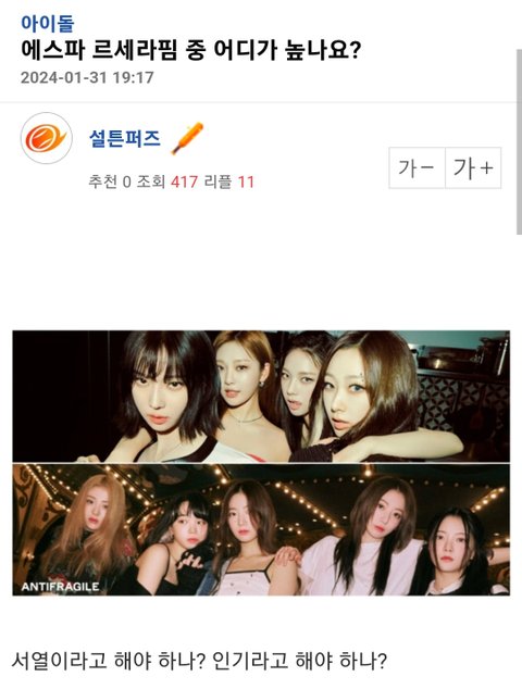 에스파 1표도 없네..어쩌다 이렇게됨??