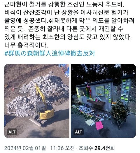 군마현의 조선인 추모비를 강제철거 했는데