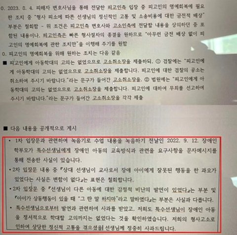 ㅇㅇ 그리고 재판장에서 욕했던거 처음엔 혼잣말이라고 주장하다가 나중엔 주호민 아들이 그 욕을 알아들을 수 없을 정도로 지능이 낮아서 학대가 성립이 안된다고 주장함