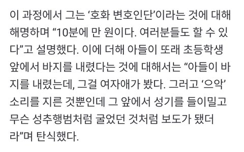 아들이 바지를 내렸을뿐이고 여자애가 봤을뿐이고. 난 이 사람 아직도 심각성을 모르는구나 싶기만한데. 지 애 손이 친구 뺨에 닿았을뿐이라고 헛소리하던 진상부모랑 다를게뭐임? 앞으로 본인 아이도 괜히 선처해달라 하지말고 사고치면 얌전히 학교에서 나갑시다. 분반 못하겠다 원래 다니던 학급으로 등교하겠다 되도않는 통보하지마시고요