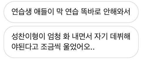 성찬이 자기 힘들었던 일 입밖으로 전혀 내지않는 스타일인데 개소리ㅋㅋㅋㅋㅋ 라이즈에서도 약간 푼수같은 재질로 세상 해맑은 st고 원빈이랑 소희가 성찬이한테 든든한 라이즈의 기둥이라고했는데 저런 워딩하고 울었대 성찬이가 ㅋㅋㅋㅋㅌ