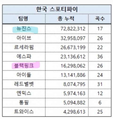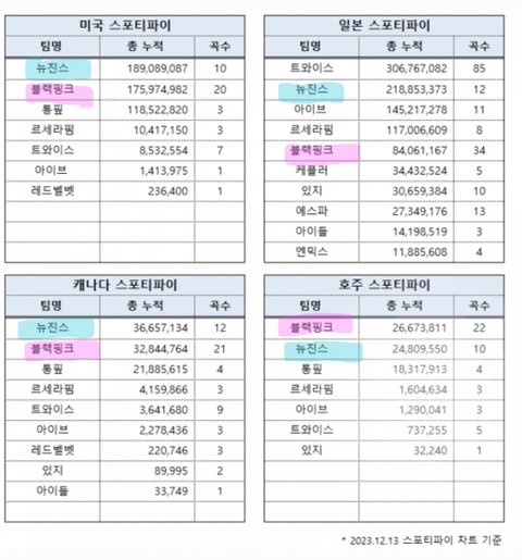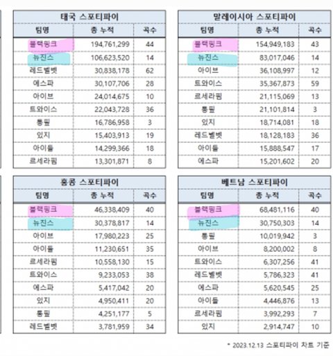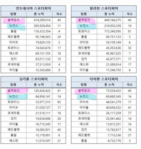 뉴진스는 미국 한국 블랙핑크는 동남아 원툴
