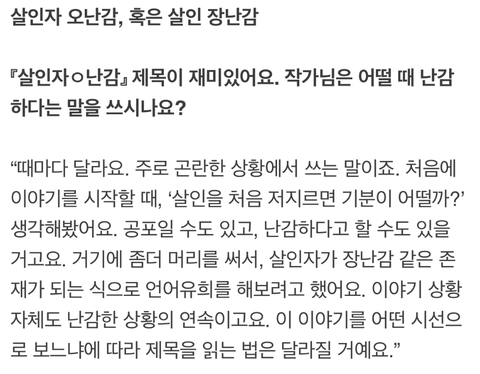 그래서 살인자ㅇ난감 출연 배우 최우식, 손석구, 이희준에게 이에 대해 물어보니 제목 읽는 방식은 작품 읽은 사람마다 부르는 방식도 달라 배우들마다 다 다르게 부른다고 한다