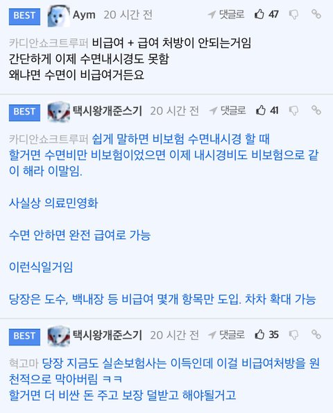 의료 민영화 찬성하는 애들은 미국 한번 봐라. 내 친구 다리 아작나서 걷지도 못하는데 구급차 부르면 돈나갈까봐 우버타고감. 병원 가야될 정도인데 집에서 민간요법 사용하는 사람 수두룩함. 과장이 아니라 민영화하면 걍 돈 없으면 죽으라는 뜻임. 외제약이 한국에 들어오면 싸지는것도 아닌데 미국같은 나라는 평균 임금이라도 높지 우리나라는 평균이 월 300인데 약사는것초자 부담됨. 나도 내 부모님도 병원 1년에 한번도 갈까말까고 따져보면 개손해인데 그 정도는 감수해야된다고 생각함.