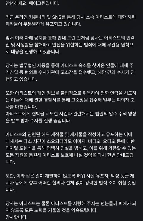 웨이크원 제베원 고소 공지 뜸 ㄷㄷ