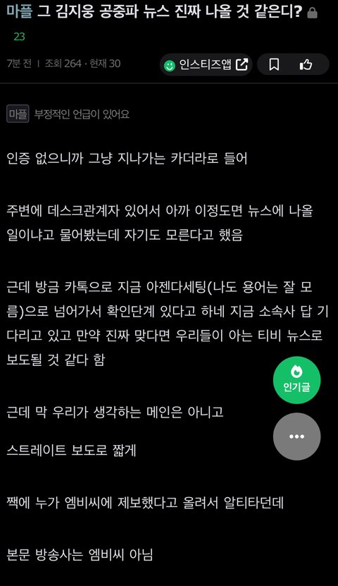 김지웅 공중파 뉴스 나온다는대?