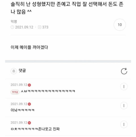 야ㅅㅂ얘네가 다 너네같을줄아냐 악플 단 판년들이 설리조문웅애웅ㅇㅈㄹ 안쓴애도있어 니네가 썼더고 얘네도 써재낀거아님 그리고 썼던애..