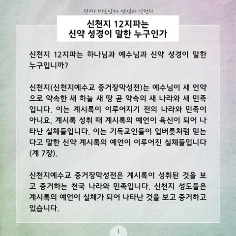 "신천지 12지파는 성경이 말한 누구인가" 를 통해