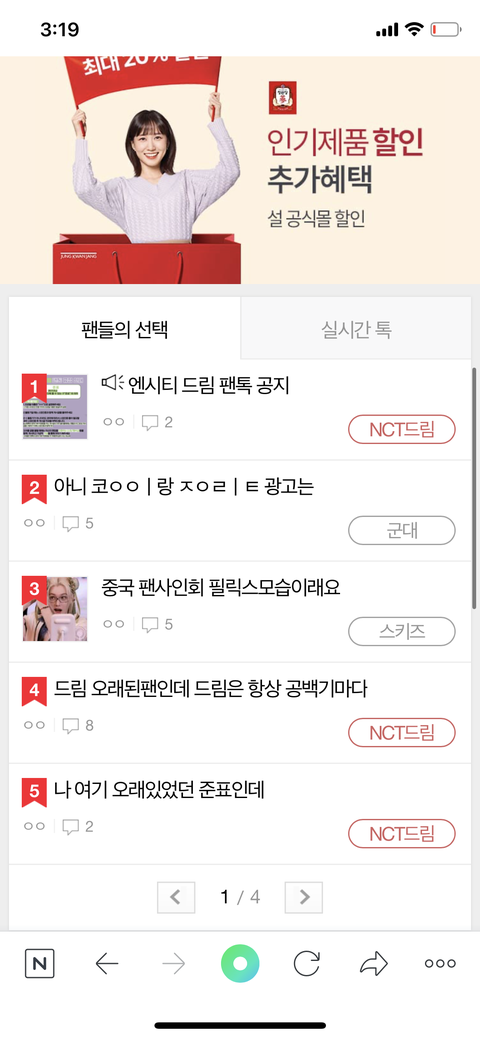 네이트판 팬톡에서 덕질하는 팬덤이 없지않음? 있어봤자 극소수고 여기 어그로때매 리젠 망했는데 팬톡 1위인것만 봐도.....