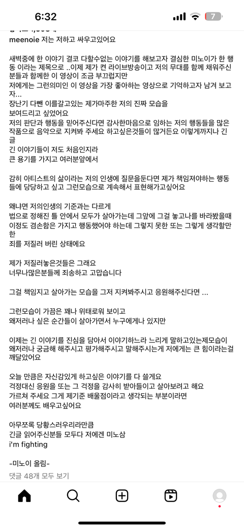 미노이 인스타에 글올라왔는데