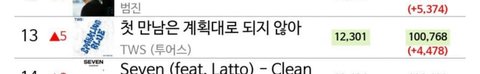 투어스 데뷔곡 멜론 TOP 100 차트 13위
