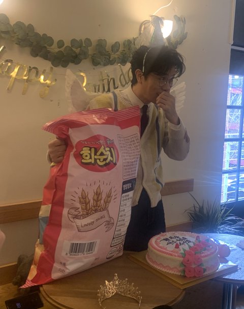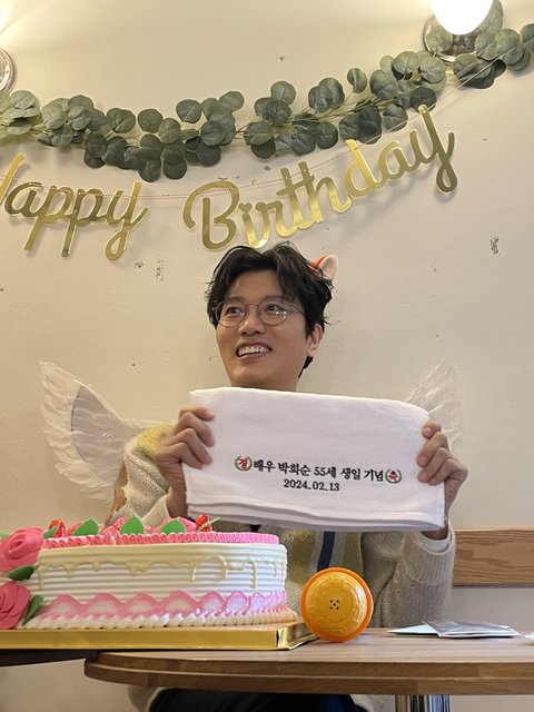 배우 박희순 55세 생일 기념이라고 적힌 수건과